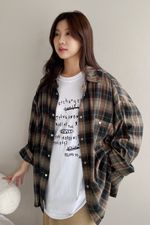 Connie推薦款!銀壓釦格紋落肩襯衫(直播款)